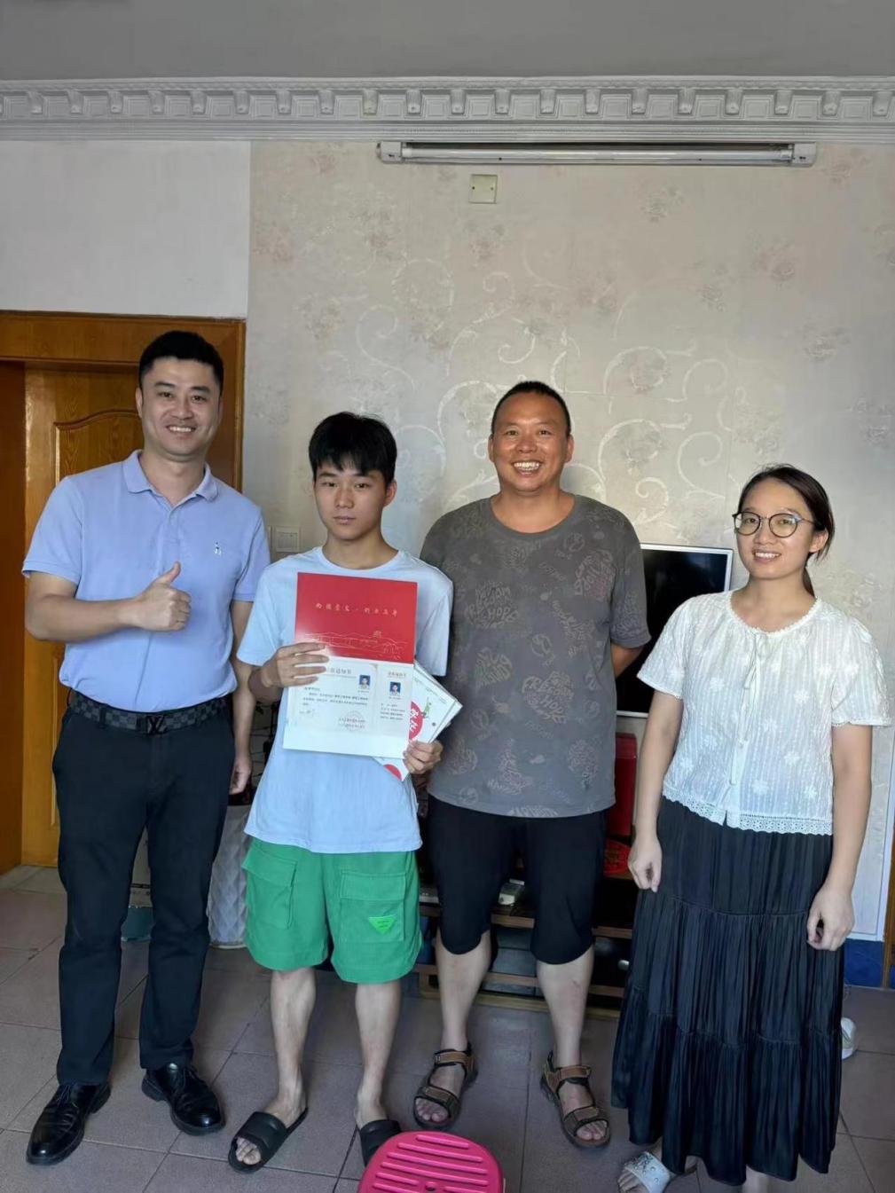 近日,太阳成集团tyc122cc教学工作负责人与专业机构负责人,以及公司员工会会长,共同化身成为特别的“快递员”,亲手送出了2024年的第一封录取通知书。这份承载着厚望与梦想的通知书,被送往了家住东阳的金津平同学手中。