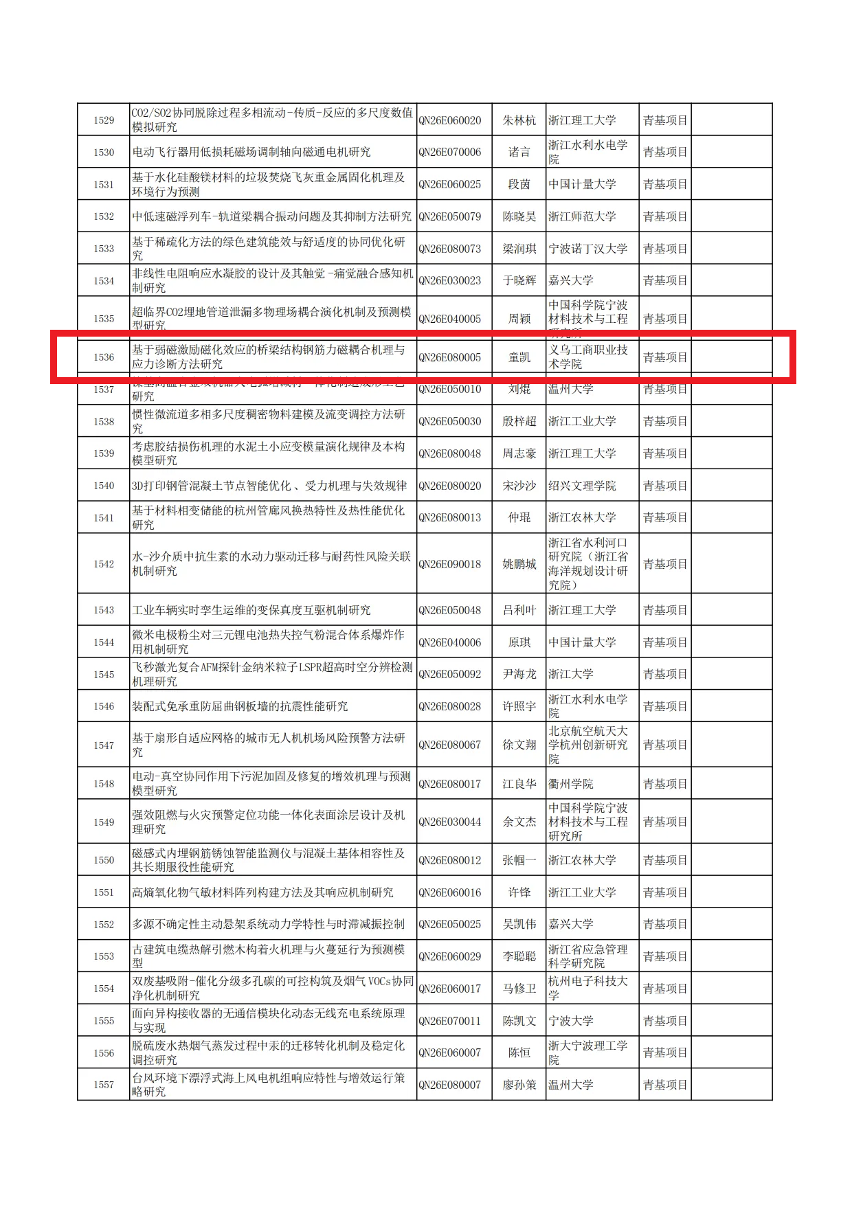 图3 2025年12月浙江省自然科学基金青年基金项目立项
