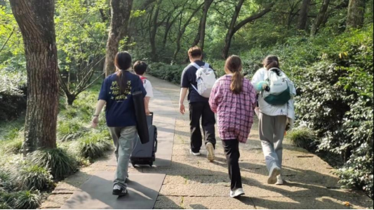 员工徒步前往宁波保国寺