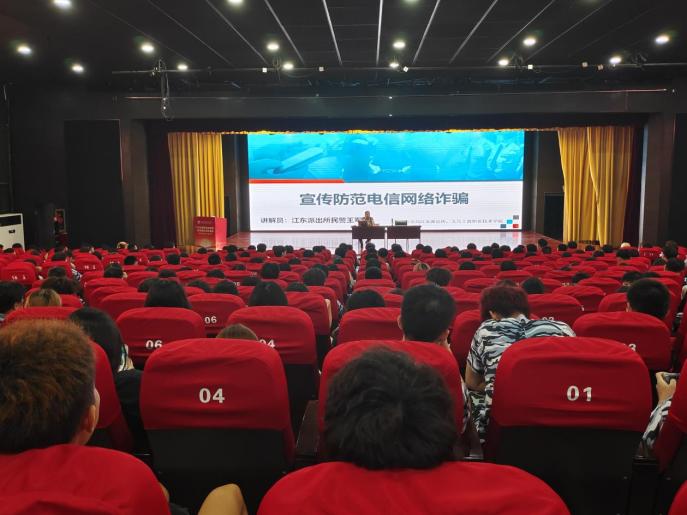 随后,江东派出所民警王军伟为新生们开展防范电信网络诈骗宣传,王警官为大家详细解读了什么是电信网络诈骗、电信网络诈骗的常见形式以及如何宣传防范电信网络诈骗。王警官向同学们讲述了近两年来公司发生的多起诈骗事件,诈骗手段五花八门,令人防不胜防,同学们纷纷表示要小心谨慎,以免上当受骗。最后,王警官温馨向同学们提示防范电信网络诈骗“五不要”,不要轻信不明对象及可疑信息、不要因贪小利而受违法信息的诱惑、不要轻信不明电话、短信链接、不要向陌生人汇款、转账、不要泄露个人信息,特别是银行卡信息。
