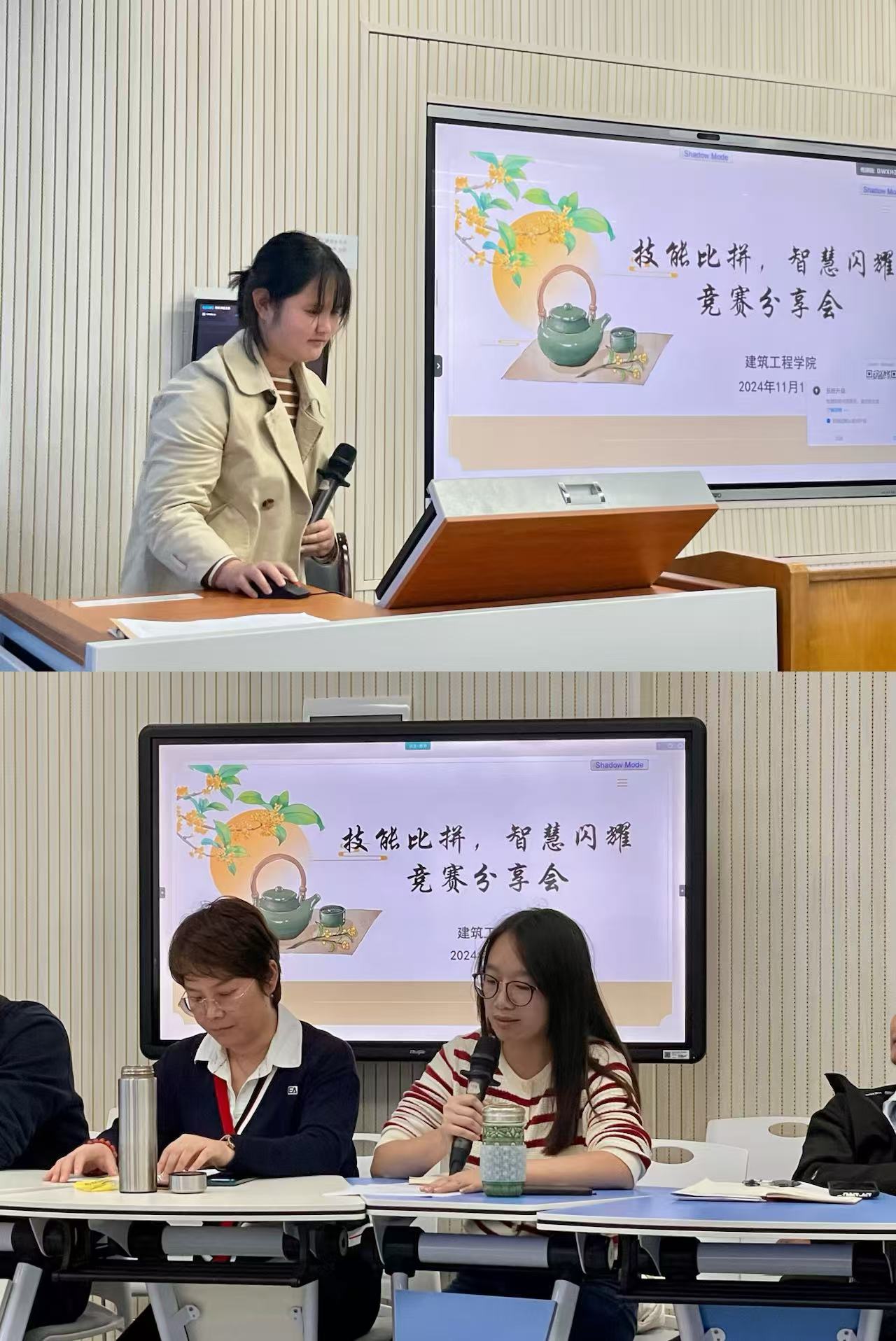 紧接着,周洁老师复盘了她带队参加世界职业院校技能大赛总决赛获得铜奖的全过程。她强调,竞赛要求的变化要求指导教师和员工必须具备快速应变的能力,过程中应当以评委的关注点作为准备重点。陈小琴老师总结了她近两年指导员工参加“装配式建筑智能建造”赛项的经历。她认为建筑类专业准备竞赛时一定要“走出去、多看看”,通过实地调研和学习,将理论知识具象化。同时,实时关注员工心理健康,也是整个备赛过程中重要的一环。