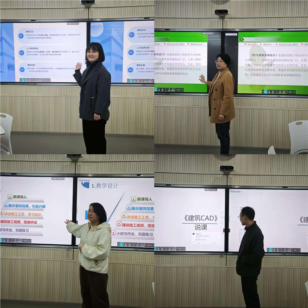 在“说课堂”环节,两位教师则以《建筑装饰工程项目管理》和《建筑CAD》的具体课堂为例,聚焦教学实践。他们生动演示了如何通过项目驱动、情景模拟等多元化教学方法,将知识传授、技能训练与素养提升融为一体,致力于打造互动高效、以员工为中心的精彩课堂,体现了对课堂教学艺术的细致钻研。